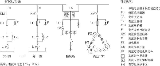 高壓TSC動(dòng)態(tài)無功補(bǔ)償裝置由主控系統(tǒng)、光纖觸發(fā)電路、高壓晶閘管閥組、脈沖變壓器、電容器、電抗器、保護(hù)單元等組成,核心原理是通過主控系統(tǒng)對系統(tǒng)運(yùn)行參數(shù)進(jìn)行檢測、分析、判斷、輸出控制指令激活光纖觸發(fā)電路,再由觸發(fā)系統(tǒng)控制晶閘管閥組的快速導(dǎo)通與開斷,進(jìn)而實(shí)現(xiàn)電容器組的投入和切除,使系統(tǒng)功率因數(shù)穩(wěn)定在設(shè)定值范圍內(nèi)。閥組投切采用過零投切方式,響應(yīng)時(shí)間在20ms以內(nèi),投切過程無涌流、沖擊,能快速跟蹤補(bǔ)償系統(tǒng)所需的無功電流。