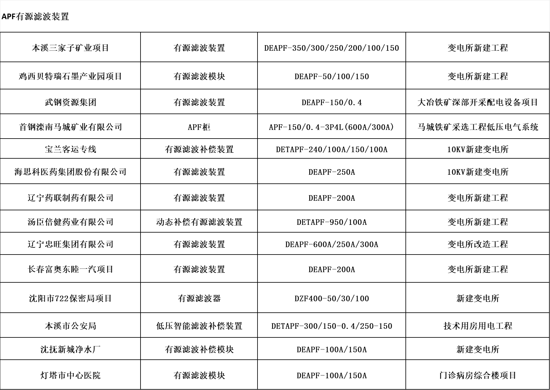 該產(chǎn)品可有效治理電力系統(tǒng)中存在的諧波超標,電流及電壓畸變率上升導致的一系列電能質量問題,降低諧波含量、保障系統(tǒng)設備安全運行。廣泛應用于存在典型非線性負載設備行業(yè),非線性負載設備主要有UPS、開關電源、變頻器、整流器、充電機、中頻爐、礦熱爐、電焊機、可控硅調光系統(tǒng)等。